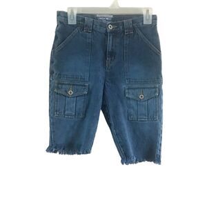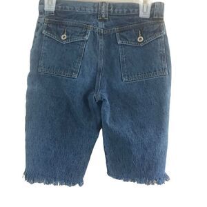 Limited Too girls blue denim jean shorts in size 14. These shorts feature six pockets and a fringe hem. Excellent condition with no issues.