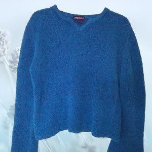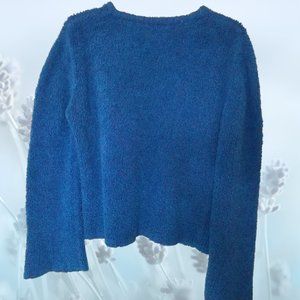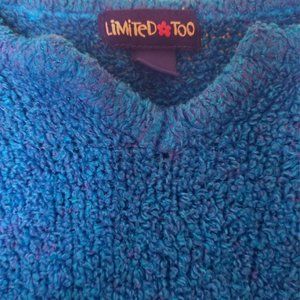 Very stretchy, thick knit sweater, missing size information. Estimated 10/12 kids sizes.
