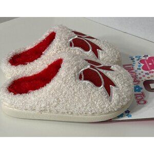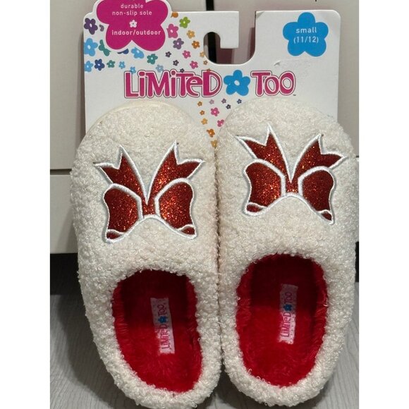 Limited Too white red lined Christmas bow slippers girls S 11/12 NWT glitter