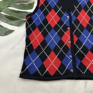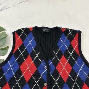 Limited Womens Vintage Y2k Sweater Vest Size L Black Red Argyle Plaid Wool Blend