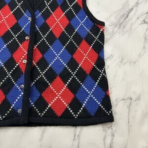 Limited women's vintage y2k black and red argyle plaid wool blend sweater vest, size L. It is free from any rips or stains. It measures about 42 inches around the bust and is about 23 inches long.