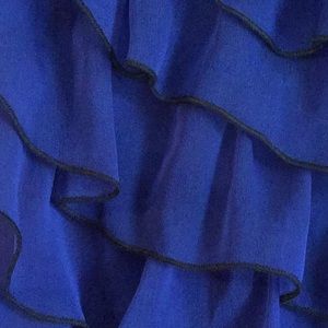 Limited sheer royal blue ruffled sleeveless blouse. Ruffles are stitched with black thread pit to pit measurements 20” length 27” in GUC