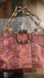 The main body is made of velvet and alligator leather. Interior is made of maroon suede. There is one pocket inside.