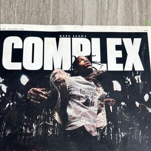 Stylish Complex magazine art print featuring a dynamic black and white design. Perfect for modern home decor.