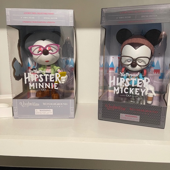 Limited edition hipster, Mickey Mouse and Minnie, mouse vinyl figures 9”