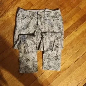 Cool rocker jeans have stretch to wear out dancing like a cream color and gray like new condition waist approximately 16in length 29in