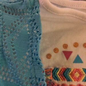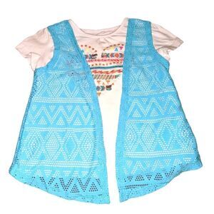 Limited too retro white top with embroidered and fringe details with attached blue cardigan