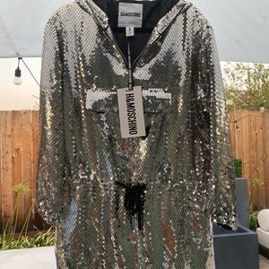 Limited-Edition Jeremy Scott Moschino X H&M Silver Sequin Hoodie Mini Dress NWT