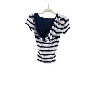 Limited two size 14 hoodie short sleeve blue white and pink striped V-neck top 60% cotton 40% polyester D 32