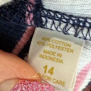 Limited to size 14 blue and white and pink striped hoodie short sleeved top