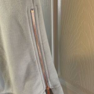 Silvery gray oversized ribbed sweatshirt in excellent used condition. Has rose gold zippers on both sides. Barely worn. From a smoke free home.