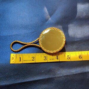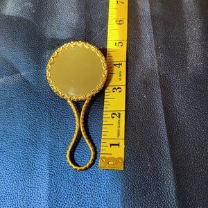 Limoge miniature handheld mirror with walleau inspired painted couple courting.