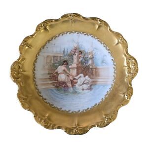 Limoges B&H Blakeman & Henderson Hand Painted Gold Rim Dish Woman Swan Cupid 12"