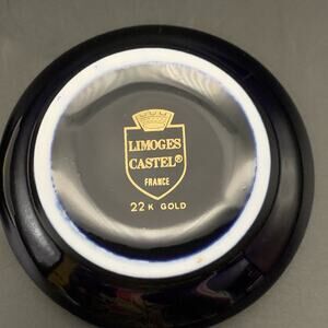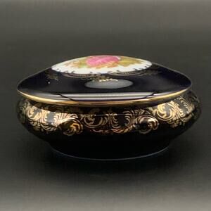 Vintage Limoges Castel France Blue Porcelain 22K Gold Trinket Box Courting Couple Scene