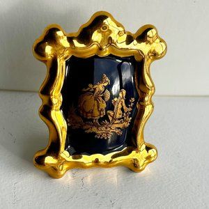 Limoges France Cobalt Blue & 22KT Gold Miniature Vase, Plate, Frame SET OF 3