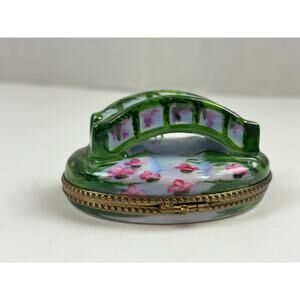 Limoges France Hand Painted Bridge Trinket Box Peint Main