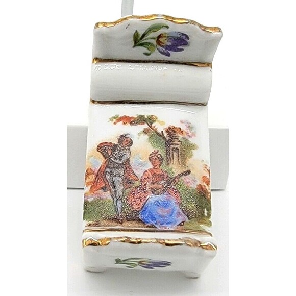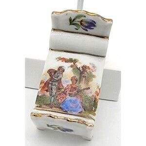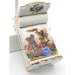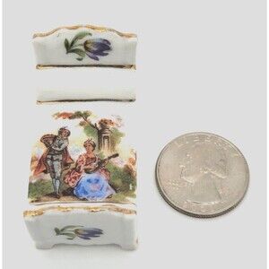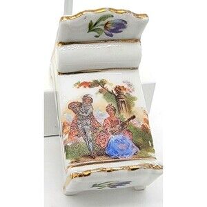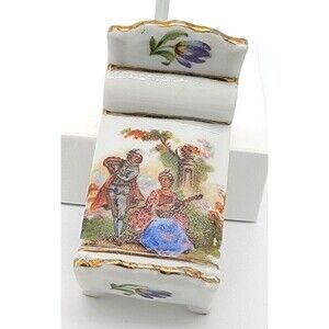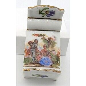 This exquisite miniature porcelain bed from Limoges, France, features a charming hand-painted Victorian scene. Standing at approximately 1.30" high x 1.73" wide x 1" deep, this delicately crafted piece is a testament to fine artistry. Signed on the bottom, it is in good preowned condition, showcasing its timeless beauty. If you have any questions or need further details, please feel free to send me a message. Thank you for looking, and don't forget to explore my store for other unique items!