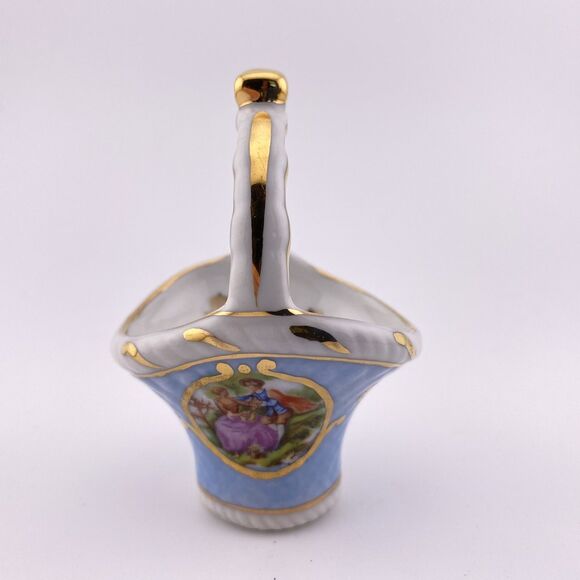 Limoges France - Miniature Porcelain Basket - Courting Couple