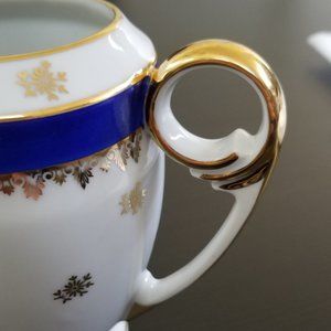 has discoloration (see creamer back stamp picture) otherwise it and all are Gorgeous. Creamer has lovely decorative shaped handle.