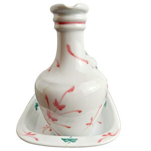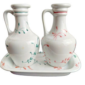 Limoges France Pottery Cruet Set Oil Vinegar Hand Painted Fluers Tray Pink Green