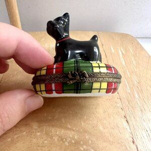 Limoges France Scottie Dog Terrier Tartan Porcelain Trinket Box Peint Main