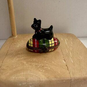 Limoges France Black Scottie Dog Terrier Tartan Porcelain Trinket Box Peint Main S.E. - Holiday, Plaid, Vintage, Scottish Terrier, Dog Lover, Vintage Pill Box