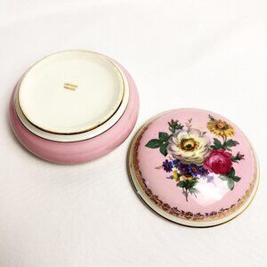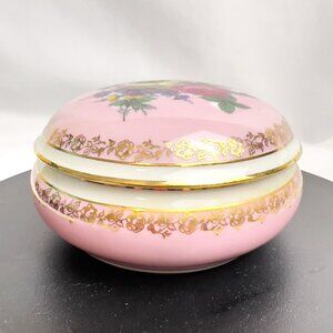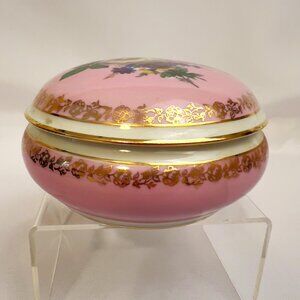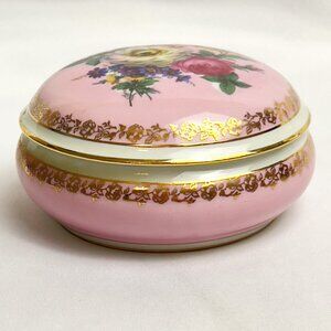 Limoges France Vintage Porcelain Trinket Box Pink Floral Vanity Dish Gold Trim
