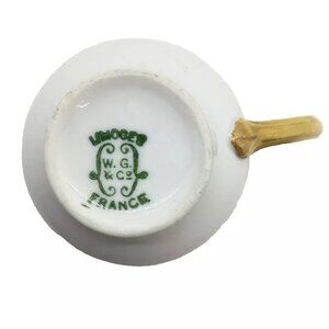 This dainty little cup is in excellent condition. There are no cracks, chips or crazing and the gold is intact. It is part of the Wm. Guerin collection - pattern GUE119. It measures approximately 2 1/8" high and 2 3/8" across excluding the 6/8" wide handle. I have 5 of these cups available. Please message me if you are interested in more than one. I will take photos of the others so that you know what you are purchasing.