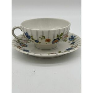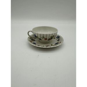 Limoges France WM Guerin Coffee Cup w/ Saucer Floral Pattern