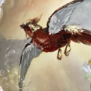 Limoges Hand-Painted Decorative Porcelain Plate Flying Bird & Flower Scalloped E