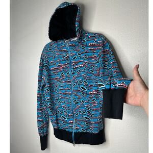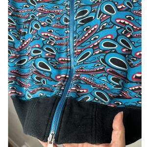 Alimoland Blue Red White Face Print Long Sleeve Front Zip Pocketed Lightweight Hoodie Jacket