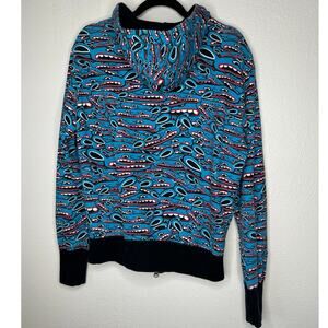 Limoland Blue Red White Face Print Long Sleeve Front Zip Hoodie