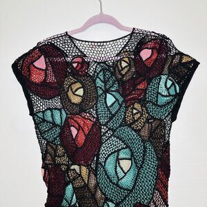 Lim’s 1980’s Vintage Hand Crocheted Jewel Tone Abstract Dress Large