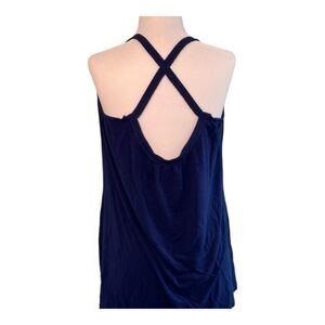 LinQ Halter Top Navy Blue Knit Sparkle Trim Criss Cross Back Strap Sleeveless XL