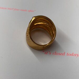 Elevate your accessory game with this multi-band stainless steel ring, designed to make a statement. Featuring an elegant gold-plated finish, the ring showcases intricate detailing across multiple layers, adorned with sparkling cubic zirconia (CZ) accents. The layered bands offer a modern twist on a classic design, providing depth and texture to any look.