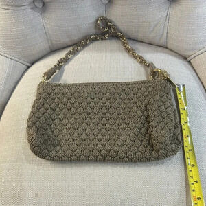 Small taupe Lina handbag with gold trim. EUC. A great neutral bag that can be worn with almost everything! Measurements in pictures. From a pet and smoke free home.