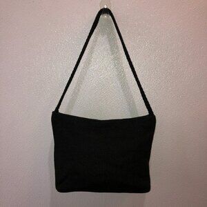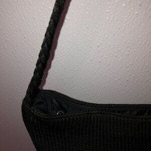 Lina Shoulder Bag Woven Zip Top Black Knit Handbag Purse Boho Hobo