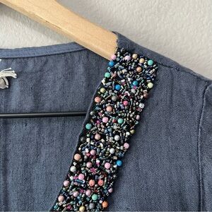 Brand new with tags Lina Tomei linen shift dress in blue. Size small. V-neck with colorful beaded design. 100% linen (except for side panels). Short sleeves. Pockets. Knee length. Made in Italy. NWT.