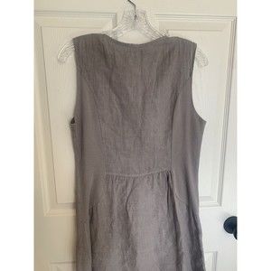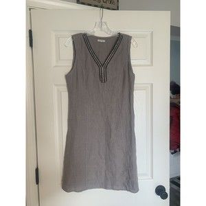 Lina Tomei Italy 100% Linen Dress Embellished Neck Gray Size Medium.