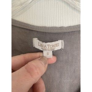 Lina Tomei Italy 100% Linen Dress Embellished Neck Gray Size Small