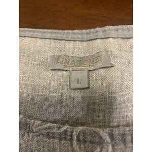 This Lina Tomei embroidered linen midi dress offers a sophisticated, lightweight design with a flattering fit. Ideal for warm weather, with practical pockets.