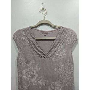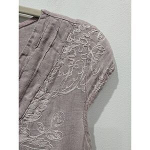 Lina Tomei 100% Linen Made in Italy Embroidered Cap Sleeve V Neck Pockets Sheath Dress, XS