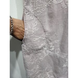 Lina Tomei 100% Linen Made in Italy Embroidered Cap Sleeve V Neck Pockets Sheath Dress, XS