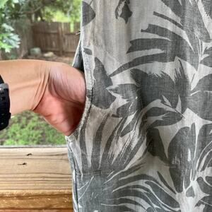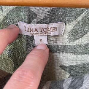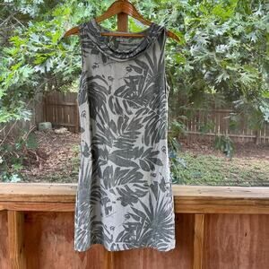 Lina Tomei Women's Green Floral Linen Sleeveless Mini Dress Size S