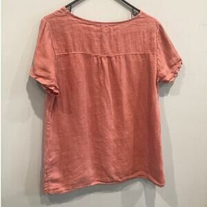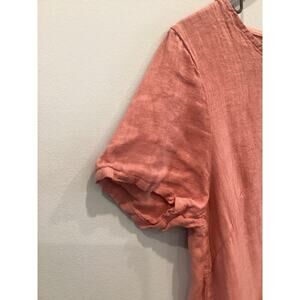 Lina Tomei Womens Linen Shirt Size Medium Dusty Pink Embroidered Lagom Beachy