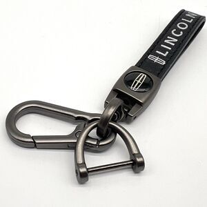 Lincoln Keychain Genuine Leather with Tire Valve Stem Caps Key D-Ring for Navigator MKZ MKX MKC Towncar Continental - Black