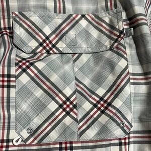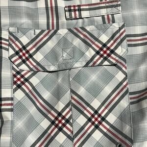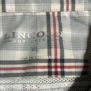 Lincoln Outfitters plaid shirt in XL. Features a stylish plaid pattern with red, black, and white colors.