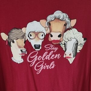 Dark fuschia(not red) graphic t-shirt featuring 'Stay Golden Girls' design. Excellent condition.