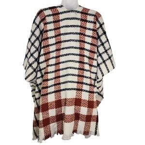 Lincoln Outfitters Women Poncho One Size Shawl Cape Plaid Scarf Finge Multicolor