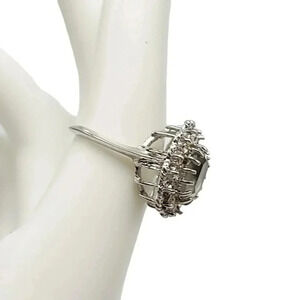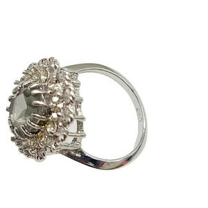 Lind Gray Grey Clear Glass Rhinestone Openwork Flower Silver Plated Ring Size 7